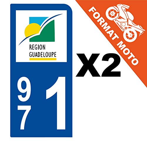 Supstick 2 Stickers Autocollants Plaques Immatriculation Moto Dept 971 Guadeloupe Bleu Foncé 1 Angle Arrondi