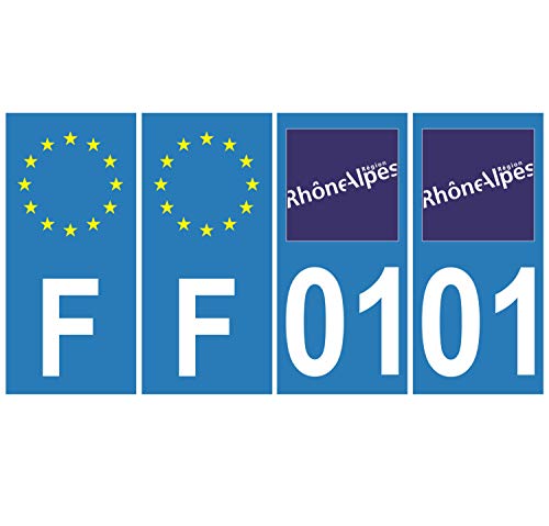 Supstick 4 Stickers Autocollants Plaques Immatriculation Auto Dept 01 Rhône Alpes Bleu Clair Angles Carrés