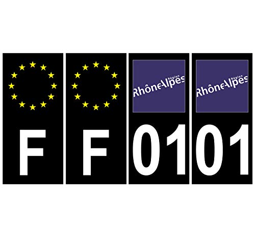 Supstick 4 Stickers Autocollants Plaques Immatriculation Auto Dept 01 Rhône Alpes Bleu Foncé Angles Carrés