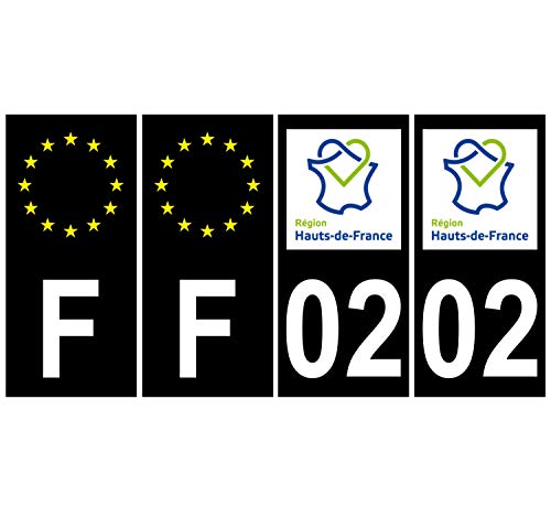Supstick 4 Stickers Autocollants Plaques Immatriculation Auto Dept 02 Hauts de France Noir Angles Carrés
