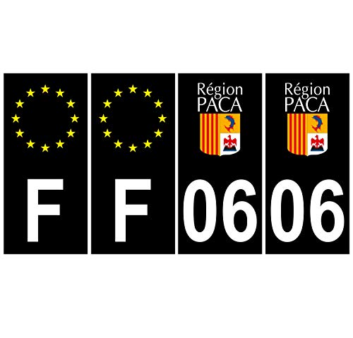 Supstick 4 Stickers Autocollants Plaques Immatriculation Auto Dept 06 Paca Noir Angles Carrés