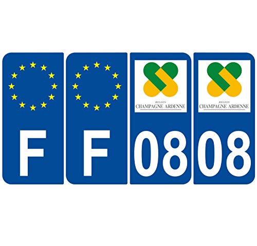 Supstick 4 Stickers Autocollants Plaques Immatriculation Auto Dept 08 Champagne Ardenne Bleu Foncé Angles Arrondis