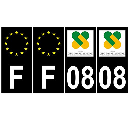 Supstick 4 Stickers Autocollants Plaques Immatriculation Auto Dept 08 Champagne Ardenne Noir Angles Carrés