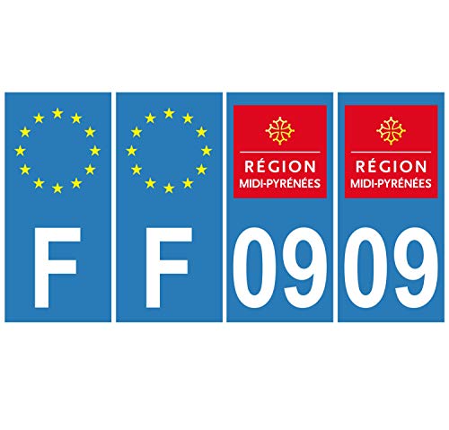 Supstick 4 Stickers Autocollants Plaques Immatriculation Auto Dept 09 Midi Pyrénées Bleu Clair Angles Carrés