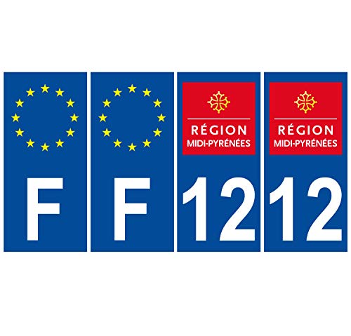 Supstick 4 Stickers Autocollants Plaques Immatriculation Auto Dept 12 Midi Pyrénées Bleu Foncé Angles Carrés