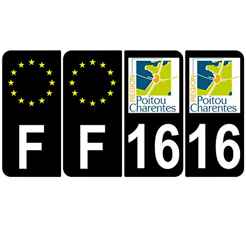 Supstick 4 Stickers Autocollants Plaques Immatriculation Auto Dept 16 Poitou Charentes Noir Angles Arrondis