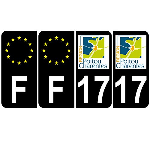 Supstick 4 Stickers Autocollants Plaques Immatriculation Auto Dept 17 Poitou Charentes Noir Angles Arrondis
