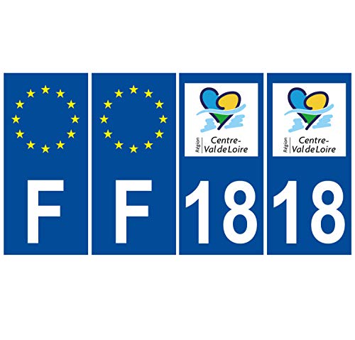 Supstick 4 Stickers Autocollants Plaques Immatriculation Auto Dept 18 Centre Val de Loire Bleu Foncé Angles Carrés