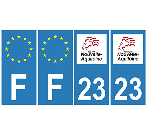 Supstick 4 Stickers Autocollants Plaques Immatriculation Auto Dept 23 Nouvelle Aquitaine Bleu Clair Angles Carrés