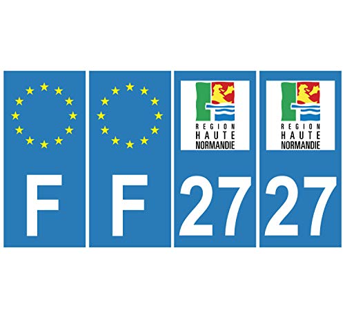 Supstick 4 Stickers Autocollants Plaques Immatriculation Auto Dept 27 Haute Normandie Bleu Clair Angles Carrés