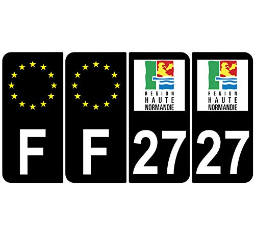 Supstick 4 Stickers Autocollants Plaques Immatriculation Auto Dept 27 Haute Normandie Noir Angles Arrondis