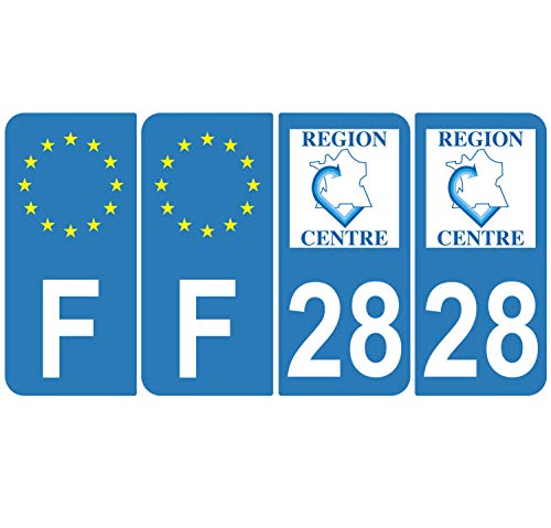 Supstick 4 Stickers Autocollants Plaques Immatriculation Auto Dept 28 Centre Bleu Clair Angles Arrondis