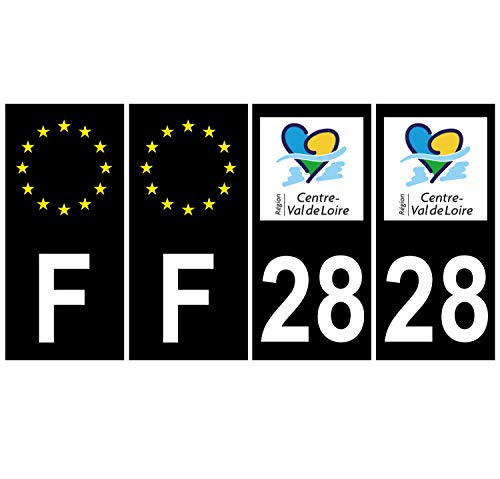 Supstick 4 Stickers Autocollants Plaques Immatriculation Auto Dept 28 Centre Val de Loire Noir Angles Carrés