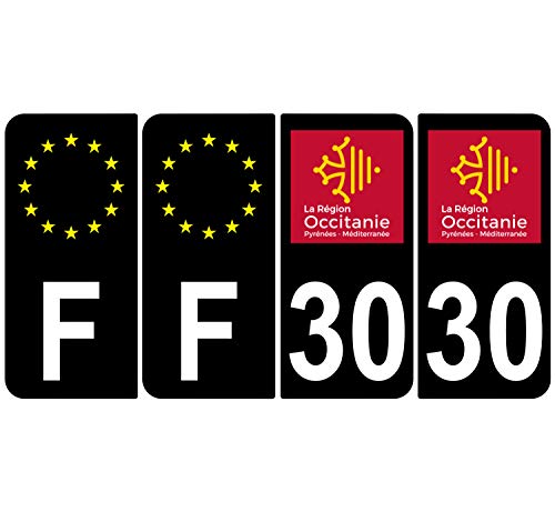 Supstick 4 Stickers Autocollants Plaques Immatriculation Auto Dept 30 Occitanie Noir Angles Arrondis
