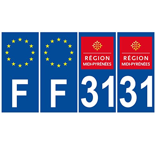 Supstick 4 Stickers Autocollants Plaques Immatriculation Auto Dept 31 Midi Pyrénées Bleu Foncé Angles Carrés