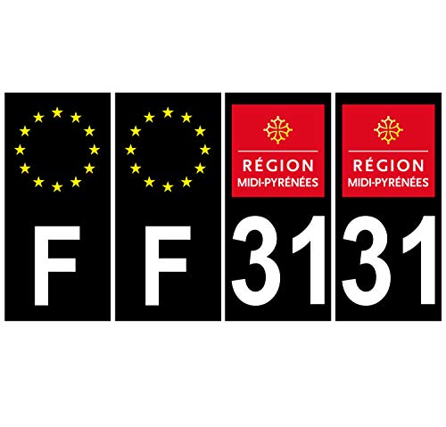 Supstick 4 Stickers Autocollants Plaques Immatriculation Auto Dept 31 Midi Pyrénées Noir Angles Carrés
