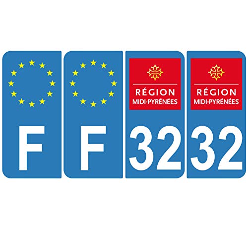 Supstick 4 Stickers Autocollants Plaques Immatriculation Auto Dept 32 Midi Pyrénées Bleu Clair Angles Arrondis