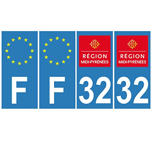 Supstick 4 Stickers Autocollants Plaques Immatriculation Auto Dept 32 Midi Pyrénées Bleu Clair Angles Carrés