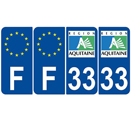 Supstick 4 Stickers Autocollants Plaques Immatriculation Auto Dept 33 Aquitaine Bleu Foncé Angles Arrondis