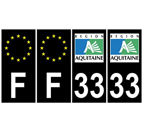 Supstick 4 Stickers Autocollants Plaques Immatriculation Auto Dept 33 Aquitaine Noir Angles Carrés