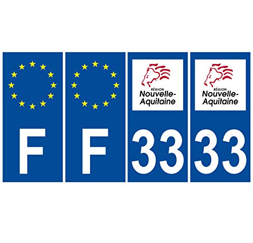 Supstick 4 Stickers Autocollants Plaques Immatriculation Auto Dept 33 Nouvelle Aquitaine Bleu Foncé Angles Carrés