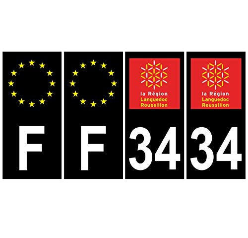Supstick 4 Stickers Autocollants Plaques Immatriculation Auto Dept 34 Languedoc Roussillon Noir Angles Carrés