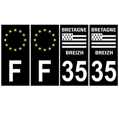 Supstick 4 Stickers Autocollants Plaques Immatriculation Auto Dept 35 Bretagne Breizh Noir Angles Carrés