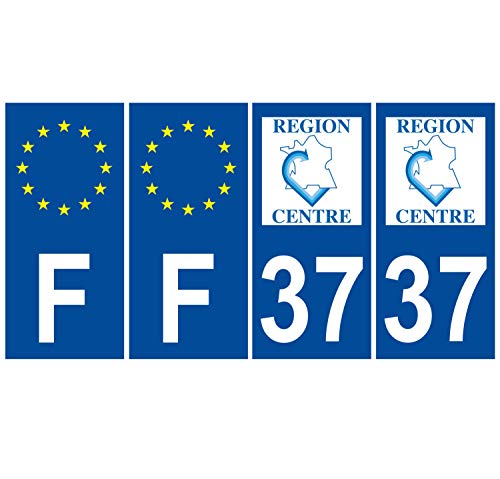 Supstick 4 Stickers Autocollants Plaques Immatriculation Auto Dept 37 Centre Bleu Foncé Angles Carrés