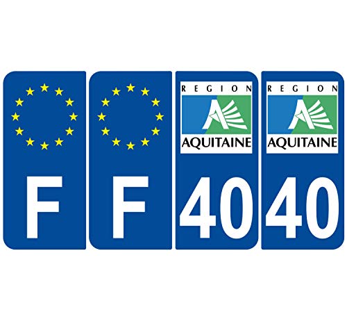 Supstick 4 Stickers Autocollants Plaques Immatriculation Auto Dept 40 Aquitaine Bleu Foncé Angles Arrondis