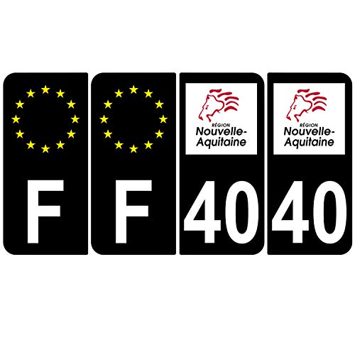 Supstick 4 Stickers Autocollants Plaques Immatriculation Auto Dept 40 Nouvelle Aquitaine Noir Angles Arrondis