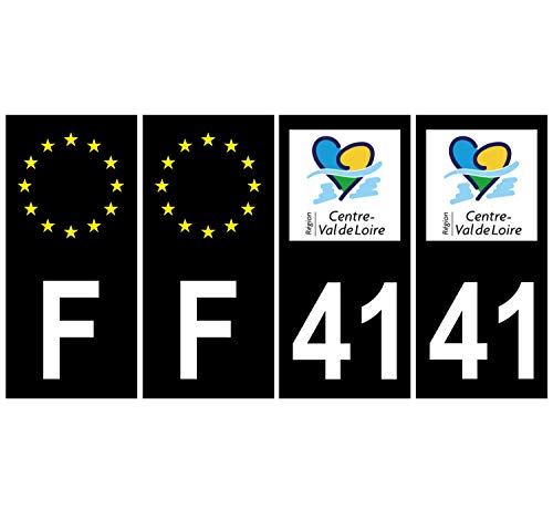 Supstick 4 Stickers Autocollants Plaques Immatriculation Auto Dept 41 Centre Val de Loire Noir Angles Carrés