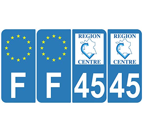 Supstick 4 Stickers Autocollants Plaques Immatriculation Auto Dept 45 Centre Bleu Clair Angles Arrondis