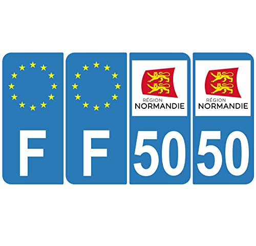 Supstick 4 Stickers Autocollants Plaques Immatriculation Auto Dept 50 Normandie Bleu Clair Angles Arrondis