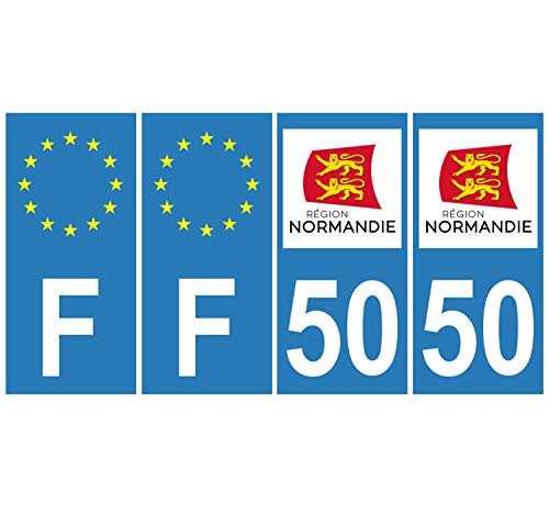 Supstick 4 Stickers Autocollants Plaques Immatriculation Auto Dept 50 Normandie Bleu Clair Angles Carrés