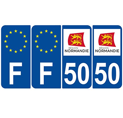 Supstick 4 Stickers Autocollants Plaques Immatriculation Auto Dept 50 Normandie Bleu Foncé Angles Arrondis