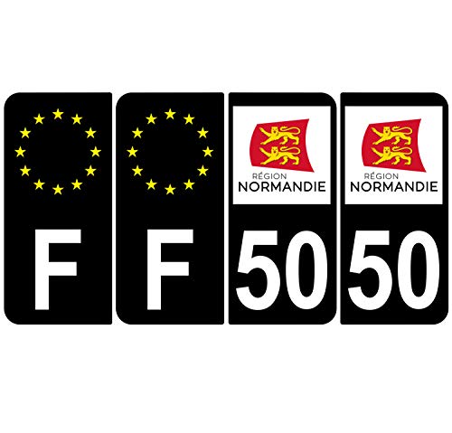 Supstick 4 Stickers Autocollants Plaques Immatriculation Auto Dept 50 Normandie Noir Angles Arrondis