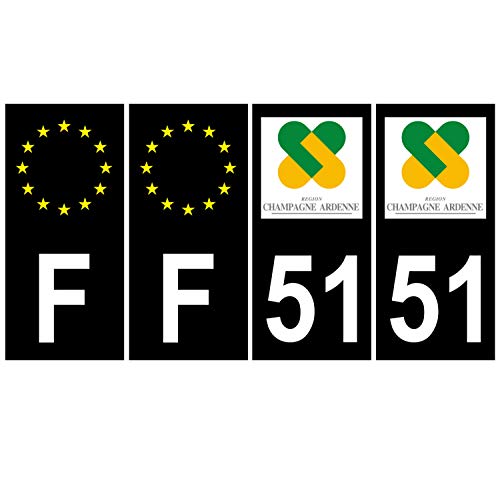 Supstick 4 Stickers Autocollants Plaques Immatriculation Auto Dept 51 Champagne Ardenne Noir Angles Carrés
