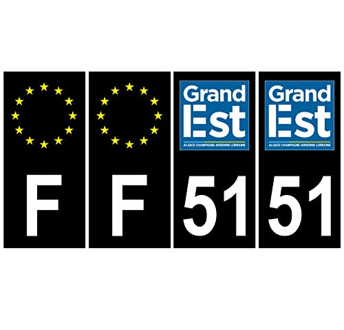 Supstick 4 Stickers Autocollants Plaques Immatriculation Auto Dept 51 Grand Est Noir Angles Carrés
