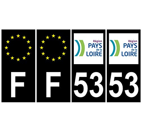 Supstick 4 Stickers Autocollants Plaques Immatriculation Auto Dept 53 Pays de la Loire Noir Angles Carrés