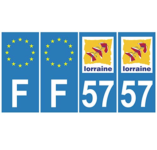 Supstick 4 Stickers Autocollants Plaques Immatriculation Auto Dept 57 Lorraine Bleu Clair Angles Carrés