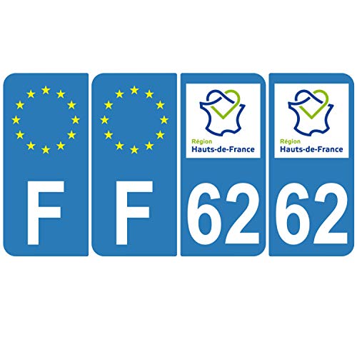 Supstick 4 Stickers Autocollants Plaques Immatriculation Auto Dept 62 Hauts de France Bleu Clair Angles Arrondis