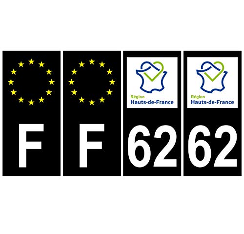 Supstick 4 Stickers Autocollants Plaques Immatriculation Auto Dept 62 Hauts de France Noir Angles Carrés