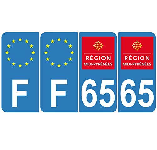 Supstick 4 Stickers Autocollants Plaques Immatriculation Auto Dept 65 Midi Pyrénées Bleu Clair Angles Arrondis