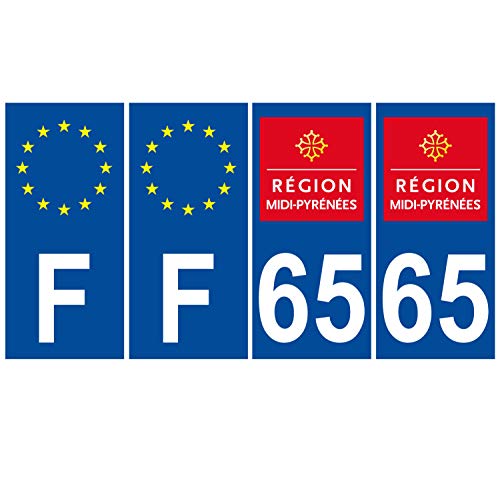 Supstick 4 Stickers Autocollants Plaques Immatriculation Auto Dept 65 Midi Pyrénées Bleu Foncé Angles Carrés