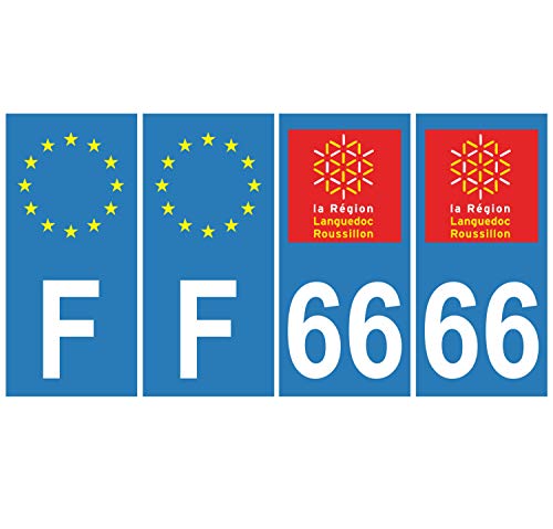 Supstick 4 Stickers Autocollants Plaques Immatriculation Auto Dept 66 Languedoc Roussillon Bleu Clair Angles Carrés