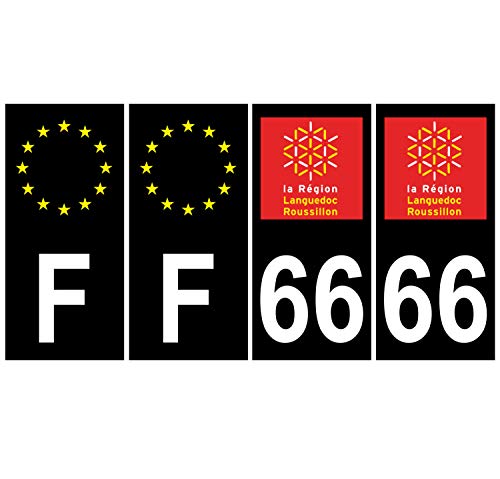 Supstick 4 Stickers Autocollants Plaques Immatriculation Auto Dept 66 Languedoc Roussillon Noir Angles Carrés