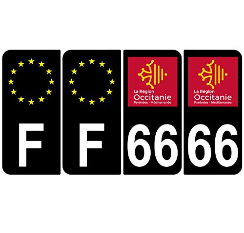 Supstick 4 Stickers Autocollants Plaques Immatriculation Auto Dept 66 Occitanie Noir Angles Arrondis