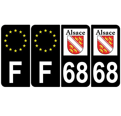 Supstick 4 Stickers Autocollants Plaques Immatriculation Auto Dept 68 Alsace Blason Noir Angles Arrondis
