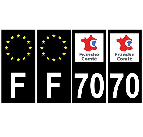 Supstick 4 Stickers Autocollants Plaques Immatriculation Auto Dept 70 Franche Comté Noir Angles Carrés
