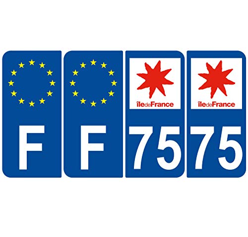 Supstick 4 Stickers Autocollants Plaques Immatriculation Auto Dept 75 Ile de France Bleu Foncé Angles Arrondis